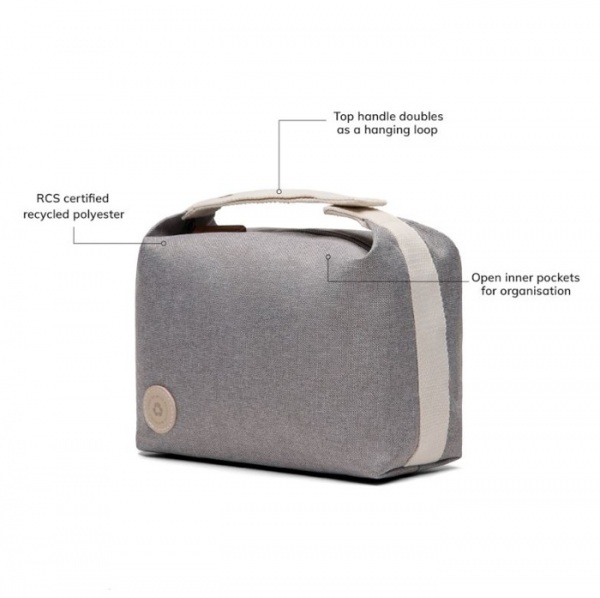 Horná rukoväť, zaistená patentným gombíkom, slúži aj ako pohodlné závesné pútko. Zips v hornej časti umožňuje jednoduchý prístup do hlavného priestoru, zatiaľ čo otvorené vnútorné vrecko uchováva vaše nevyhnutnosti usporiadané. Podiel recyklátu: 24 %