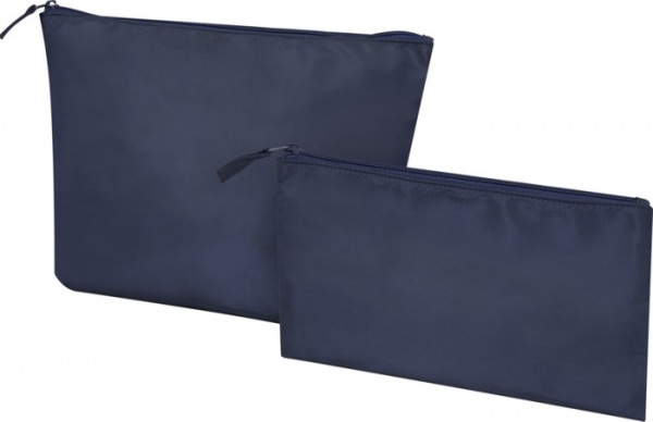 Súprava 2 toaletných taštičiek vyrobených z recyklovaného polyesteru s certifikáciou GRS. Sada obsahuje jednu veľkú a jednu malú tašku na prehľadné uloženie vecí. Ľahké, odolné a ľahko všetko zbalíte. Veľká taška má rozmery 32 × 21 cm, malý 23 × 13 cm.