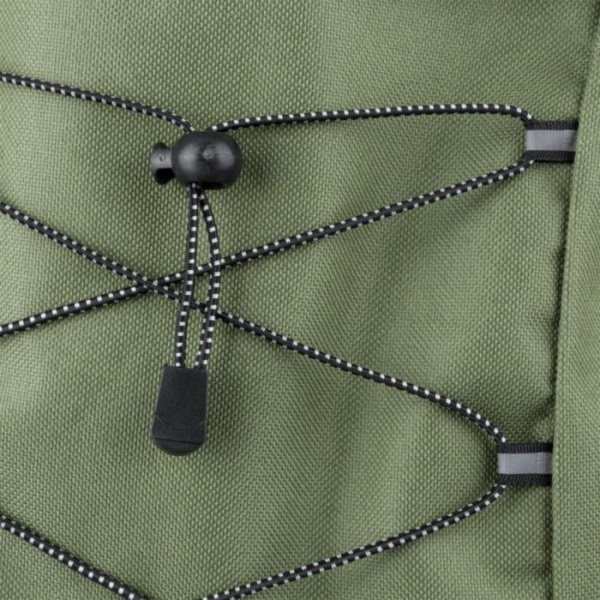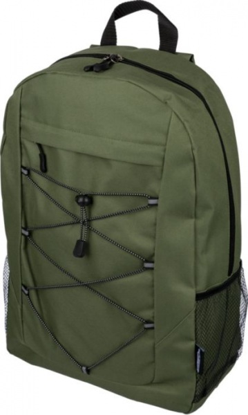 Turistický batoh z polyesteru 600D so zapínaním na šnúrku a veľkým hlavným priestorom na zips. Má bočné sieťované vrecká, elastické predné pásy, malé predné vrecko na zips na ozdobu, nastaviteľné popruhy.
