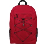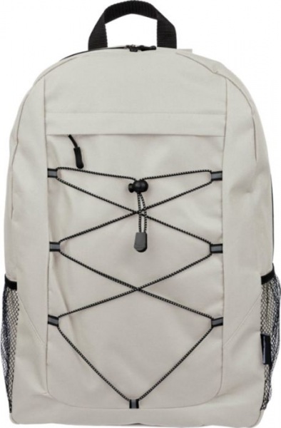 Turistický batoh z polyesteru 600D so zapínaním na šnúrku a veľkým hlavným priestorom na zips. Má bočné sieťované vrecká, elastické predné pásy, malé predné vrecko na zips na ozdobu, nastaviteľné popruhy.