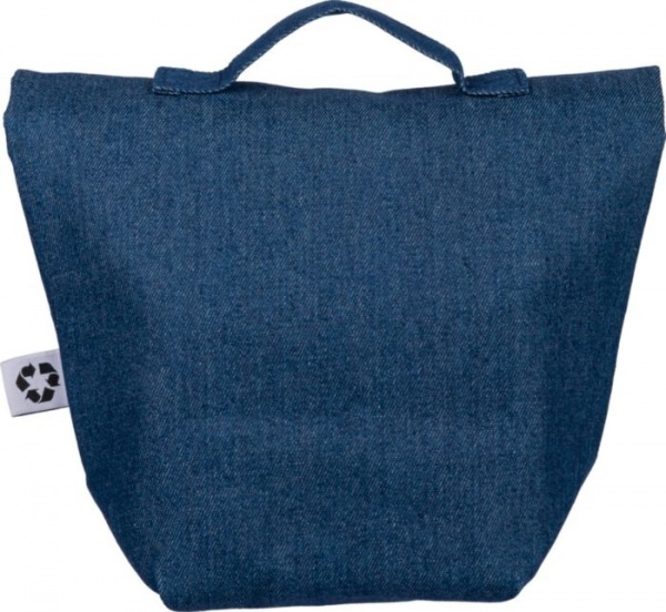 Chladiaca taška s rolovacím vrchom z recyklovaného denimu s rozmermi 27 x 10 x 31 cm. So zapínaním na suchý zips, vnútrom z PEVA materiálu a krátkym uchom na prenášanie. Má predné vrecko a recyklovaný štítok na vonkajšej strane.