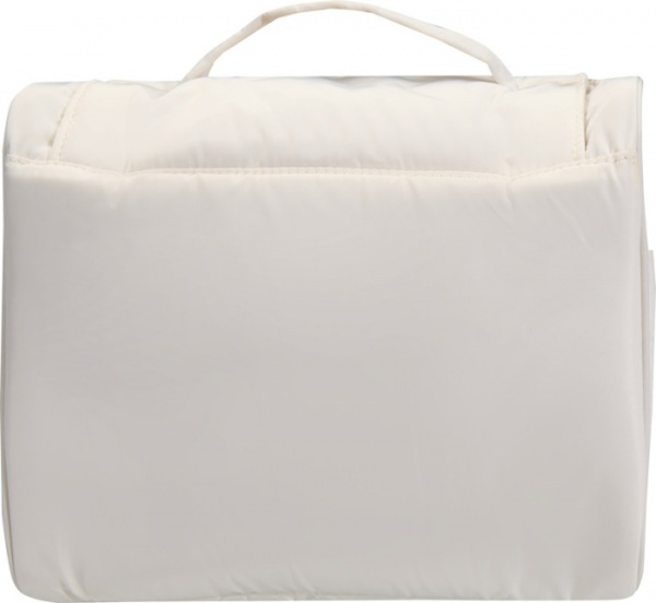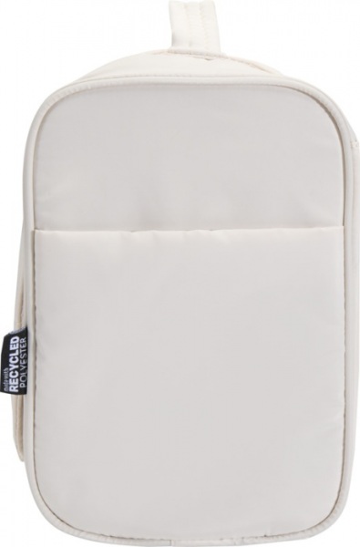 Závesná toaletná taška z recyklovaných materiálov s certifikáciou GRS. Taška má objem 8 litrov, priestranný hlavný oddiel so 6 vnútornými vreckami, 2 vonkajšími bočnými vreckami a háčikom na zavesenie. Polstrovaná rukoväť. Ľahký a vodeodolný materiál.