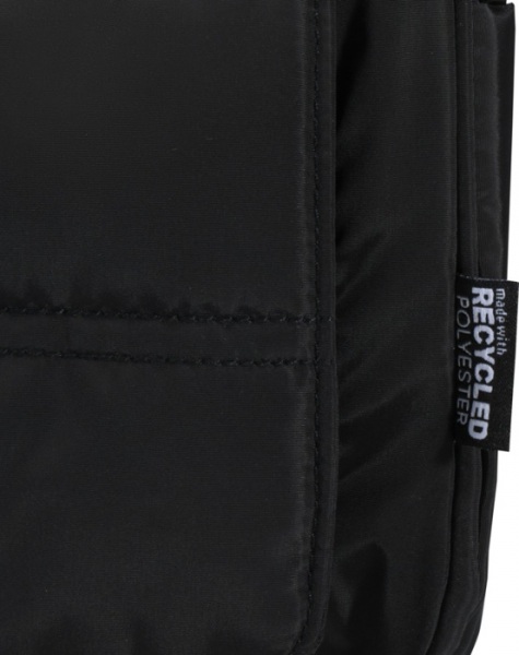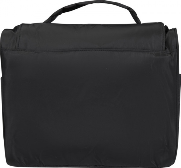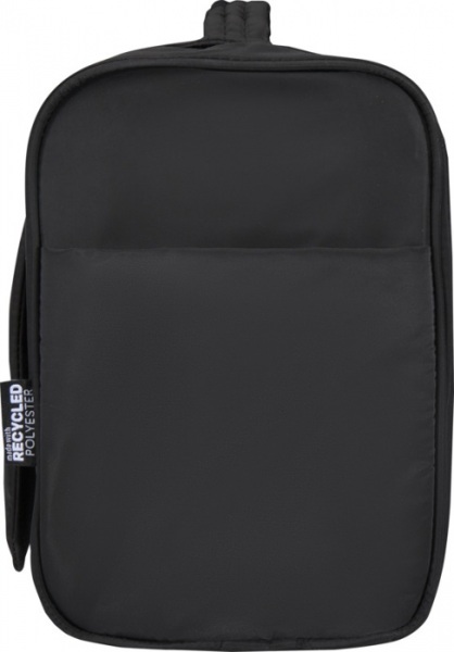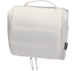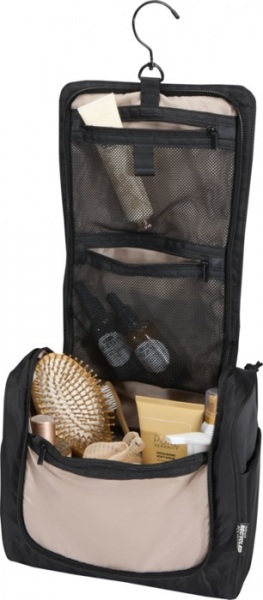 Závesná toaletná taška z recyklovaných materiálov s certifikáciou GRS. Taška má objem 8 litrov, priestranný hlavný oddiel so 6 vnútornými vreckami, 2 vonkajšími bočnými vreckami a háčikom na zavesenie. Polstrovaná rukoväť. Ľahký a vodeodolný materiál.