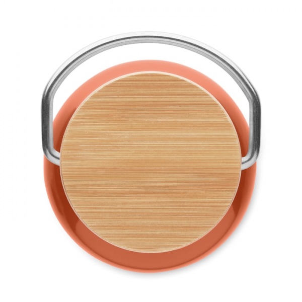 Dvojstenná nerezová termoska s izolačným vákuom. 500 ml, Viečko z bambusu s pútkom. Sublimačný potlač je možná iba na biely produkt. Netečie. Bambus je prírodný materiál, môže dôjsť k miernym zmenám farby, potlače a veľkosti.