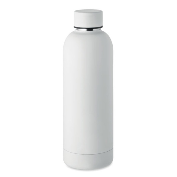 Dvojstenná izolačná vákuová fľaša z recyklovanej nerezovej ocele (90 % recyklovaná nerezová oceľ a 10 % nerezová oceľ). Objem 500 ml. Nepriepustná.