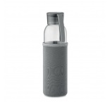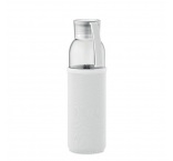Fľaša z recyklovaného skla v neoprénovom obale s PP viečkom so silikónovým závesom. Objem: 500 ml.