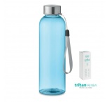 Fľaša z materiálu Tritan Renew™, ktorý neobsahuje BPA. Nerezové viečko. Objem 500 ml. Vyrobené z 50 % z plastového odpadu získaného pomocou certifikovanej hmotnostnej bilancie ISCC.