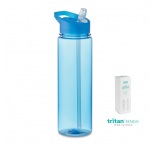 Fľaša z materiálu Tritan Renew™, ktorý neobsahuje BPA. Nerezové viečko. Objem 650 ml. Vyrobené z 50 % z plastového odpadu získaného pomocou certifikovanej hmotnostnej bilancie ISCC.