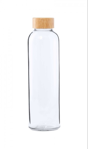 Sklenená športová fľaša s bambusovým uzáverom, 500 ml. Nevhodné pre sýtené nápoje.