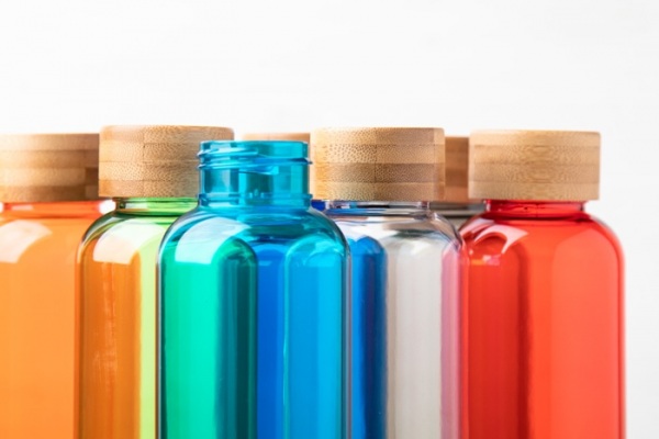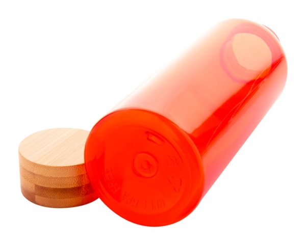 Športová fľaša z RPET plastu bez BPA s bambusovým viečkom, 500 ml. Nevhodné pre sýtené nápoje.