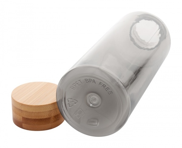 Športová fľaša z RPET plastu bez BPA s bambusovým viečkom, 500 ml. Nevhodné pre sýtené nápoje.