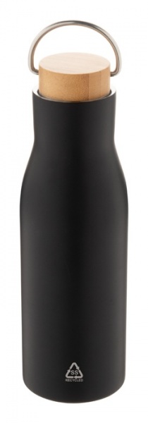 Dvojstenná termoska z recyklovanej nerezovej ocele s viečkom na prenášanie z bambusu, 500 ml.