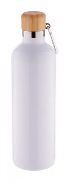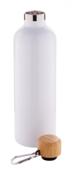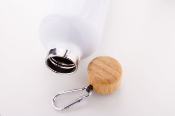 Dvojstenná termoska z nerez ocele s bambusovým viečkom a karabínou, 500 ml.