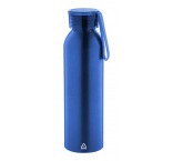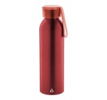 Športová fľaša z recyklovaného hliníka s viečkom v zodpovedajúcej farbe a silikónovým popruhom, 600 ml.