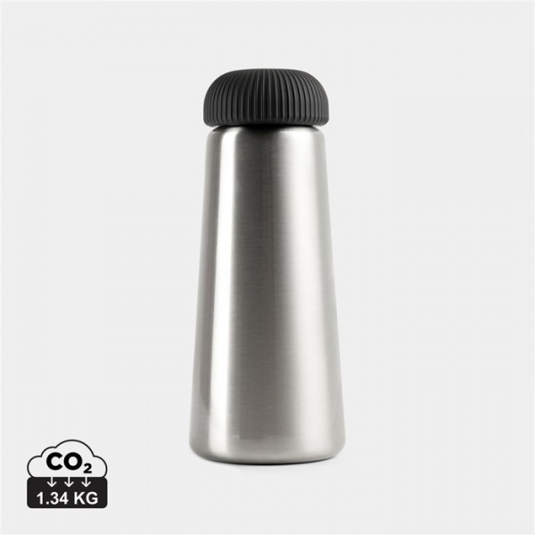 Thermofľaša s kónickým tvarom a ľahko ovládateľným uzáverom. Dvojstenná konštrukcia z nehrdzavejúcej ocele uchová nápoje až 6h horúce a až 15h studené. Vyrobená z RCS recykl. ocele. Podiel recyklátu: 75%. Objem: 450 ml. Balené v darčekovej krabičke.