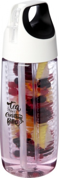 Jednostenná fľaša z recyklovaného PET materiálu s ergonomickým dizajnom a viečkom odolným proti vyliatiu. Odklápací vršok a odnímateľný infuzér vám umožní pridať do nápoja vaše obľúbené ovocie alebo bylinky. Neobsahuje BPA. Objem 700 ml.