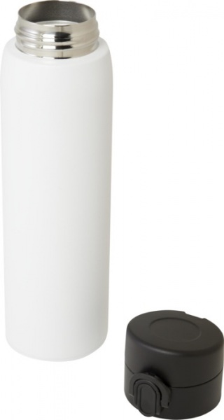 Termoska z recyklovanej nerezovej ocele s certifikáciou RCS a mechanizmom ľahkého otvárania. Termoska je nepriepustná a vďaka vákuovej medenej izolácii nápoje vydržia horúce alebo studené niekoľko hodín. Objem 450 ml. Dodáva sa v darčekovej krabičke.