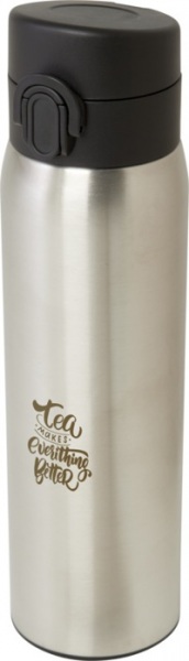 Termoska z recyklovanej nerezovej ocele s certifikáciou RCS a mechanizmom ľahkého otvárania. Termoska je nepriepustná a vďaka vákuovej medenej izolácii nápoje vydržia horúce alebo studené niekoľko hodín. Objem 450 ml. Dodáva sa v darčekovej krabičke.