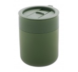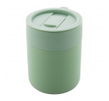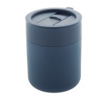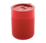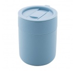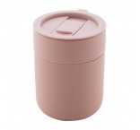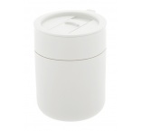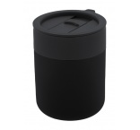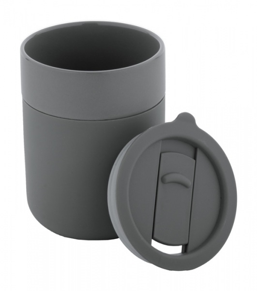 Silikónom potiahnutý keramický cestovný kelímok s PP plastovým odkvapkávacím viečkom. 300 ml.