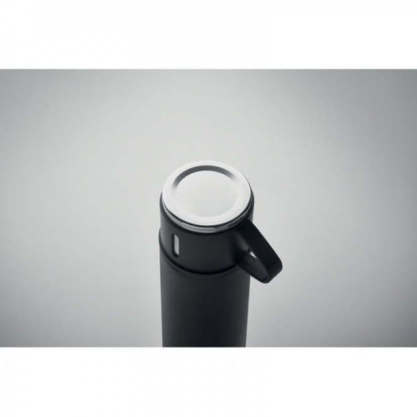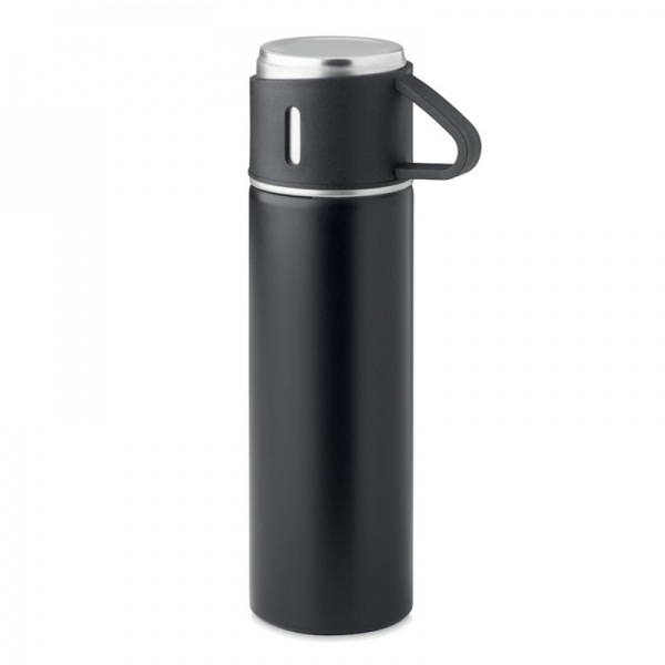 Termoska z nerezovej ocele s hrnčekom namiesto viečka. Objem: fľaša 420 ml, hrnček 150 ml.