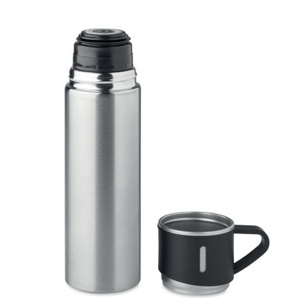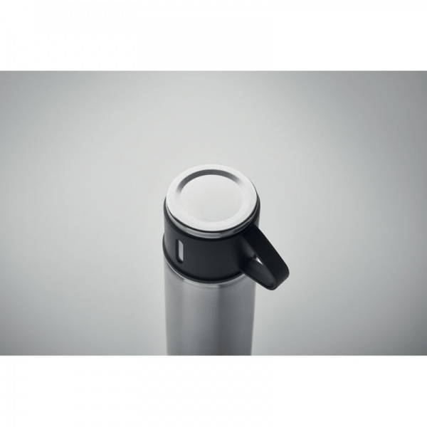 Termoska z nerezovej ocele s hrnčekom namiesto viečka. Objem: fľaša 420 ml, hrnček 150 ml.