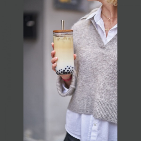 Pohár na pitie s bambusovým viečkom, slamkou z nehrdzavejúcej ocele (ideálny napríklad na bublinkový čaj) a objemom 650 ml.