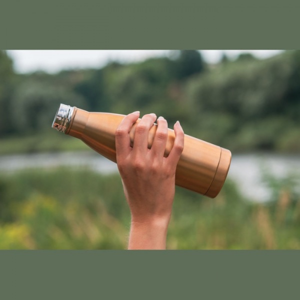 Dvojstenná vákuová fľaša z nehrdzavejúcej ocele s nepriepustným uzáverom a objemom 500 ml.