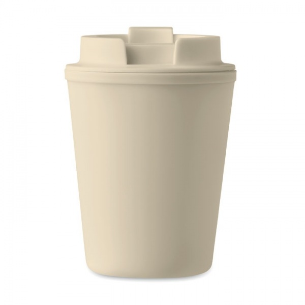 Dvojstenný pohár s vrchnákom a slamkou z recyklovaného PP plastu. Objem 300 ml.