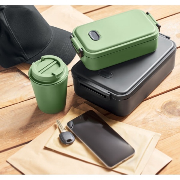 Dvojstenný pohár s vrchnákom a slamkou z recyklovaného PP plastu. Objem 300 ml.