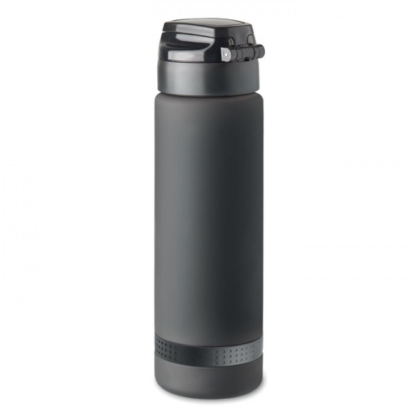Športová RPET fľaša na vodu. Motivačná časomiera, viečko otvárateľné jednou rukou, bezpečnostný zámok a držadlo na prenášanie. Objem: 1 l.