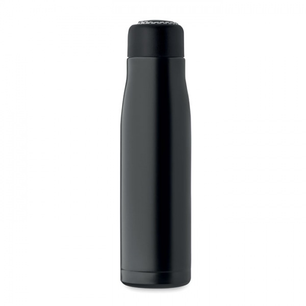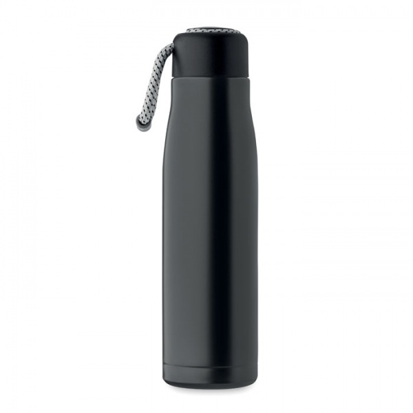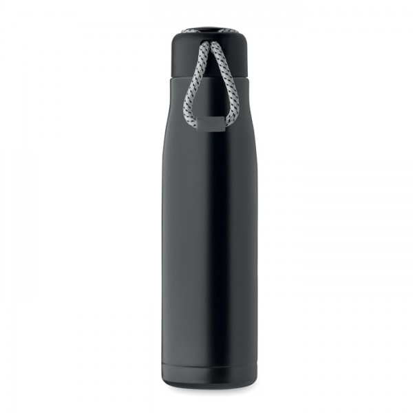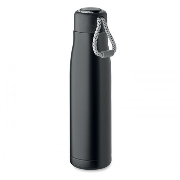 Dvojstenná izolovaná vákuová fľaša z recyklovanej nehrdzavejúcej ocele (90 % recyklovaná nehrdzavejúca oceľ a 10 % nehrdzavejúca oceľ) s integrovanou šnúrkou na PP veku. Netečie. Kapacita: 500 ml.