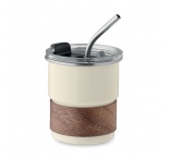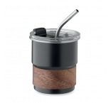 Jednostenný pohár z recyklovanej nehrdzavejúcej ocele (90 % recyklovaná nehrdzavejúca oceľ a 10 % nehrdzavejúca oceľ) s odnímateľnou rukoväťou z akáciového dreva, slamky z nehrdzavejúcej ocele. Zásuvka na slamku a priamy otvor na pitie bez úniku. Kapacita: 260 ml.