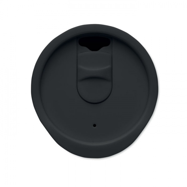 Dvojstenný pohár z PP s korkovým dnom a posuvným uzáverom náustku z PS a ABS. Kapacita: 300 ml.