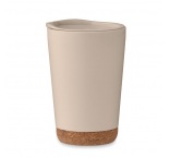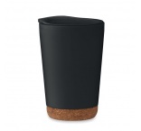 Dvojstenný pohár z PP s korkovým dnom a posuvným uzáverom náustku z PS a ABS. Kapacita: 300 ml.