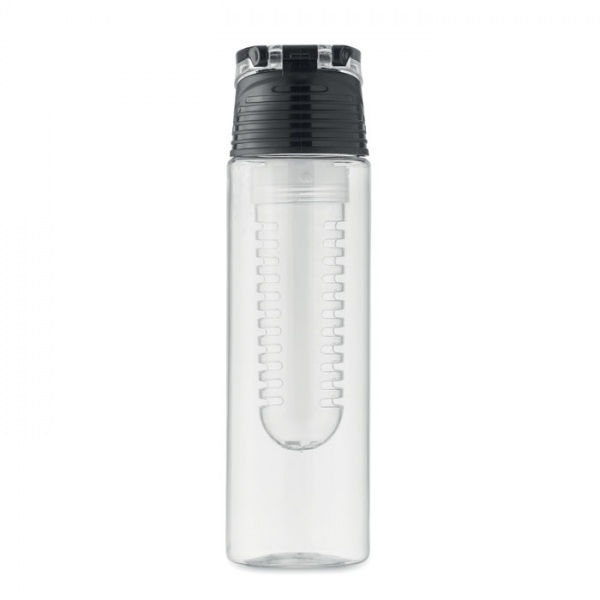Fľaša na vodu z RPET s odnímateľným infúzerom na ovocie s rukoväťou na prenášanie a nepriepustným vekom. Kapacita 500 ml.