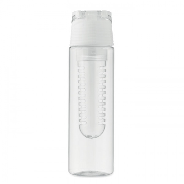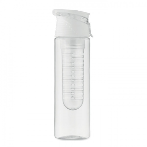 Fľaša na vodu z RPET s odnímateľným infúzerom na ovocie s rukoväťou na prenášanie a nepriepustným vekom. Kapacita 500 ml.