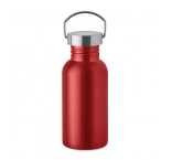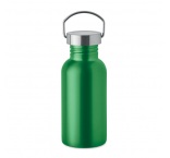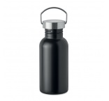 Jednostenná fľaša z recyklovanej nehrdzavejúcej ocele (90 % recyklovaná nehrdzavejúca oceľ a 10 % nehrdzavejúca oceľ) s vekom a rukoväťou. Netečie. Kapacita: 500 ml.
