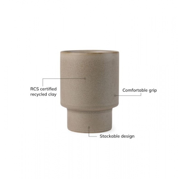 Vylepšite svoju kávu alebo čaj hrnčekom Nagano pure, ktorý je vyrobený z čiastočne recyklovanej hliny. Maximálny objem je 300 ml. Certifikácia RCS. Výrobok obsahuje 10% recyklovanej hliny s certifikáciou RCS.