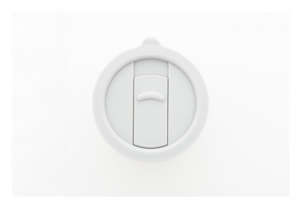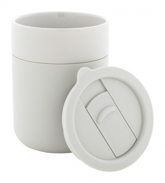 Silikónom potiahnutý keramický cestovný kelímok s PP plastovým odkvapkávacím viečkom. 300 ml.