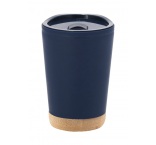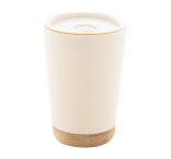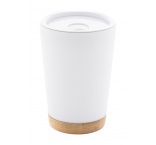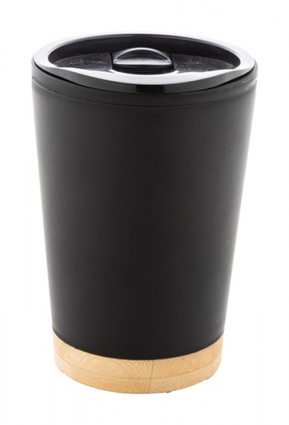 Dvojstenný termo hrnček izolovaný PP plastom s viečkom na pitie a bambusovým dnom, 260 ml.