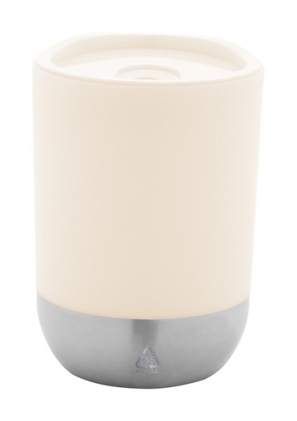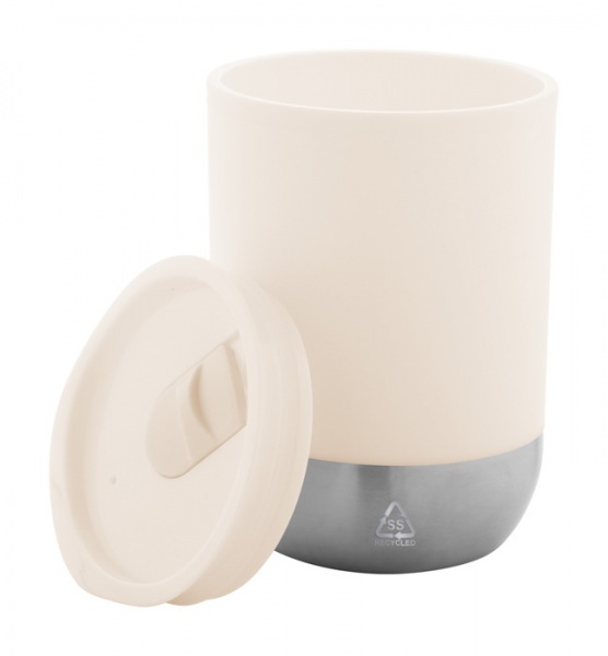 Dvojstenný termo hrnček s PP plastovou izoláciou s dnom z recyklovanej nerezovej ocele a viečkom na pitie. 300 ml.
