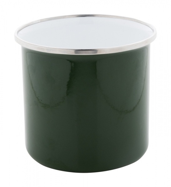 Vintage kovový smaltovaný hrnček s nerezovým okrajom, 300 ml.