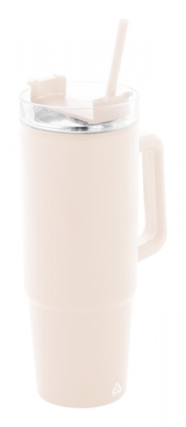 Dvojstenný termo hrnček z recyklovaného PP plastu s plastovým viečkom na pitie a slamkou. 900 ml.