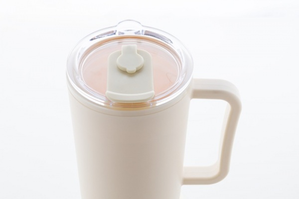 Dvojstenný termo hrnček izolovaný PP plastom s viečkom na pitie a slamkou 1100 ml.