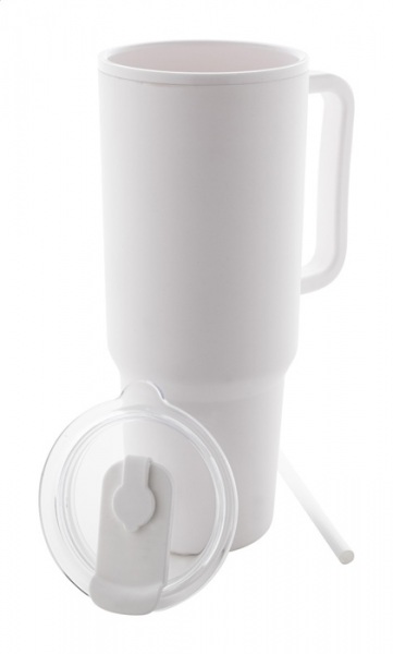 Dvojstenný termo hrnček izolovaný PP plastom s viečkom na pitie a slamkou 1100 ml.