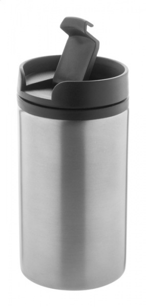 Dvojstenný izolovaný termo hrnček z recyklovanej nerezovej ocele s PP plastom vo vnútri a viečkom na pitie 250 ml.