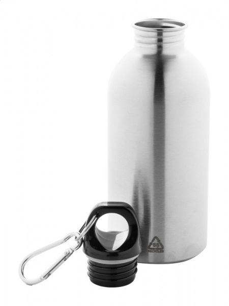Fľaša z recyklovanej nerezovej ocele s hliníkovou karabínou, 400 ml.