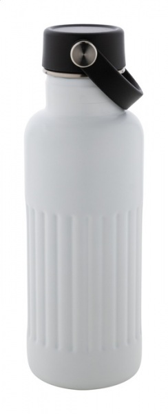 Dvojstenná vákuovo izolovaná fľaša z recyklovanej nerezovej ocele s PP plastovým prepravným viečkom 500 ml.