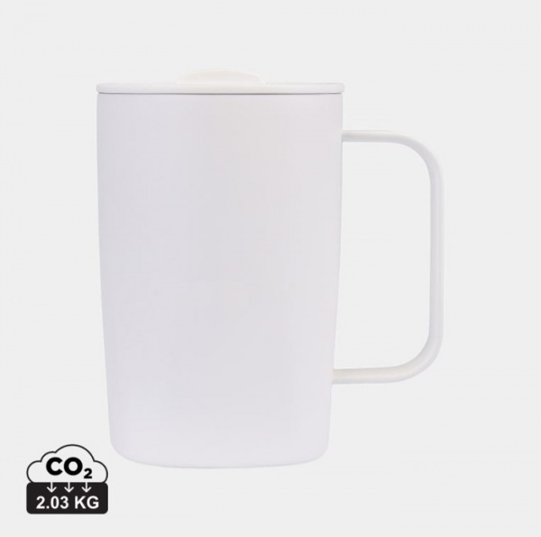 Hrnček z recyklovaného materiálu s certifikáciou RCS. Dvojitá stena udrží nápoje dlho v správnej teplote. Je vyrobený z kvalitnej recyklovanej nerezovej ocele. Udrží nápoje horúce 4 hodiny a studené 6 hodín.