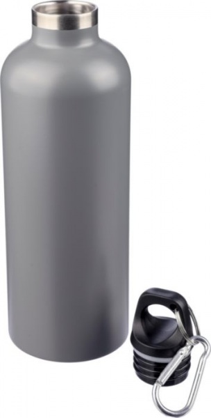 Dvojstenná fľaša z recyklovanej nerezovej ocele, PP viečkom a hliníkovou karabínou. Udrží nápoje teplé 8 hodín a studené 12 hodín. Fľaša má matný povrch (okrem striebornej farby). Nie je vhodné do umývačky. Jednotlivo balené v hnedej kartónovej krabici.